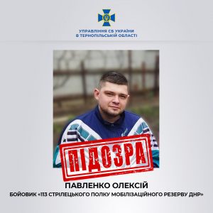 Слідчими Тернопільського управління СБУ встановлено, що 24-річний житель тимчасово окупованого Донецька у квітні 2022 року добровільно перейшов на бік ворога та вступив до лав незаконного збройного воєнізованого формування «113 стрілецького полку мобілізаційного резерву днр».