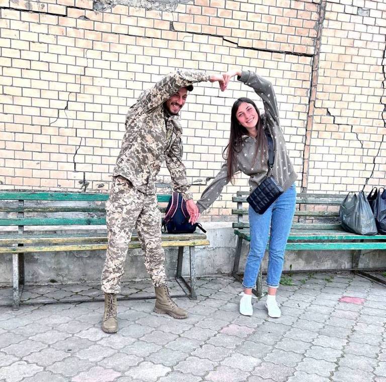 «Я не очікувала, що він зробить пропозицію, – додає Олена. – Ми сиділи в кафе у Кам’янці-Подільському. Обідали. Сашко покликав мене: «Йдемо, покуримо». Вийняв з кишені обручку і сказав: «Дай руку». Я подала. А він одягнув на мій палець обручку і мовив: «Все – моя». Я дуже здивувалася. Перепитала: «Ти що, серйозно?». Одружилися в Кам’янці-Подільському 29 квітня. Сашко був в італійській військовій формі, а я у білій сукні».