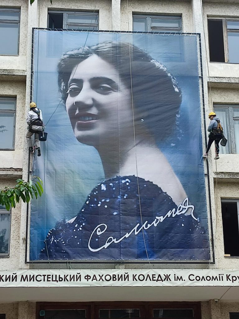 “Одного дня мені передзвонив директор бібліотеки, яка біля корпусу музичного коледжу. Потрібно було поспілкуватися стосовного відео і фото. Оскільки на деревах вже розпустилося листя, то від бібліотеки не видно, що там робиться. Та я почув шум. Вийшов, а там серед цвіту декоративних дерев з’являється обличчя Соломії. Утішився, як дитина, коли побачив, що банер ще й з підписом.