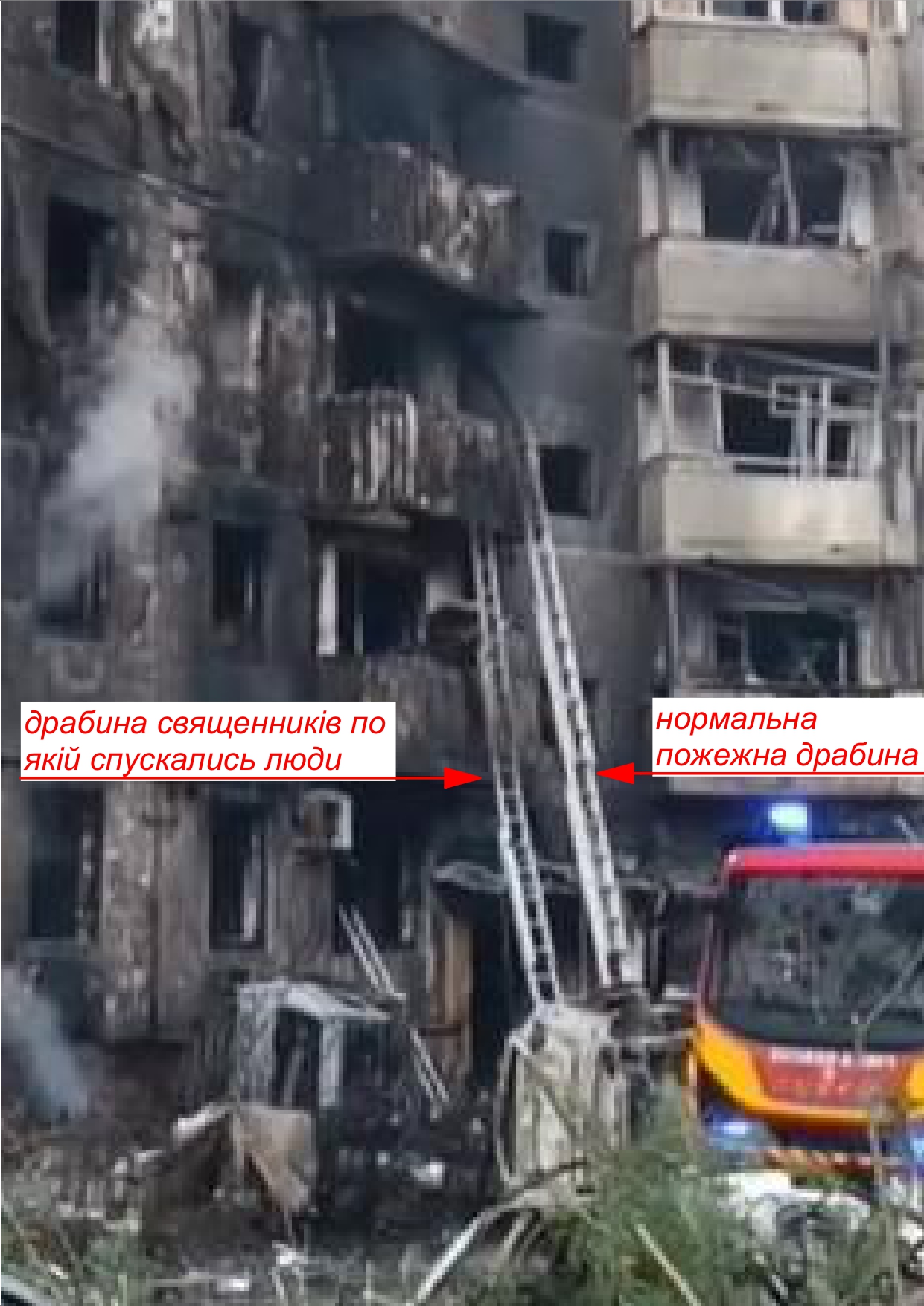– Драбину принесли з церкви Отець Богдан та Отець Василь і спочатку по ній спускались люди із зовнішньої сторони будинку.