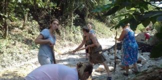 В халатах і з лопатами – у райцентрі Тернопільщини жінки ремонтують...